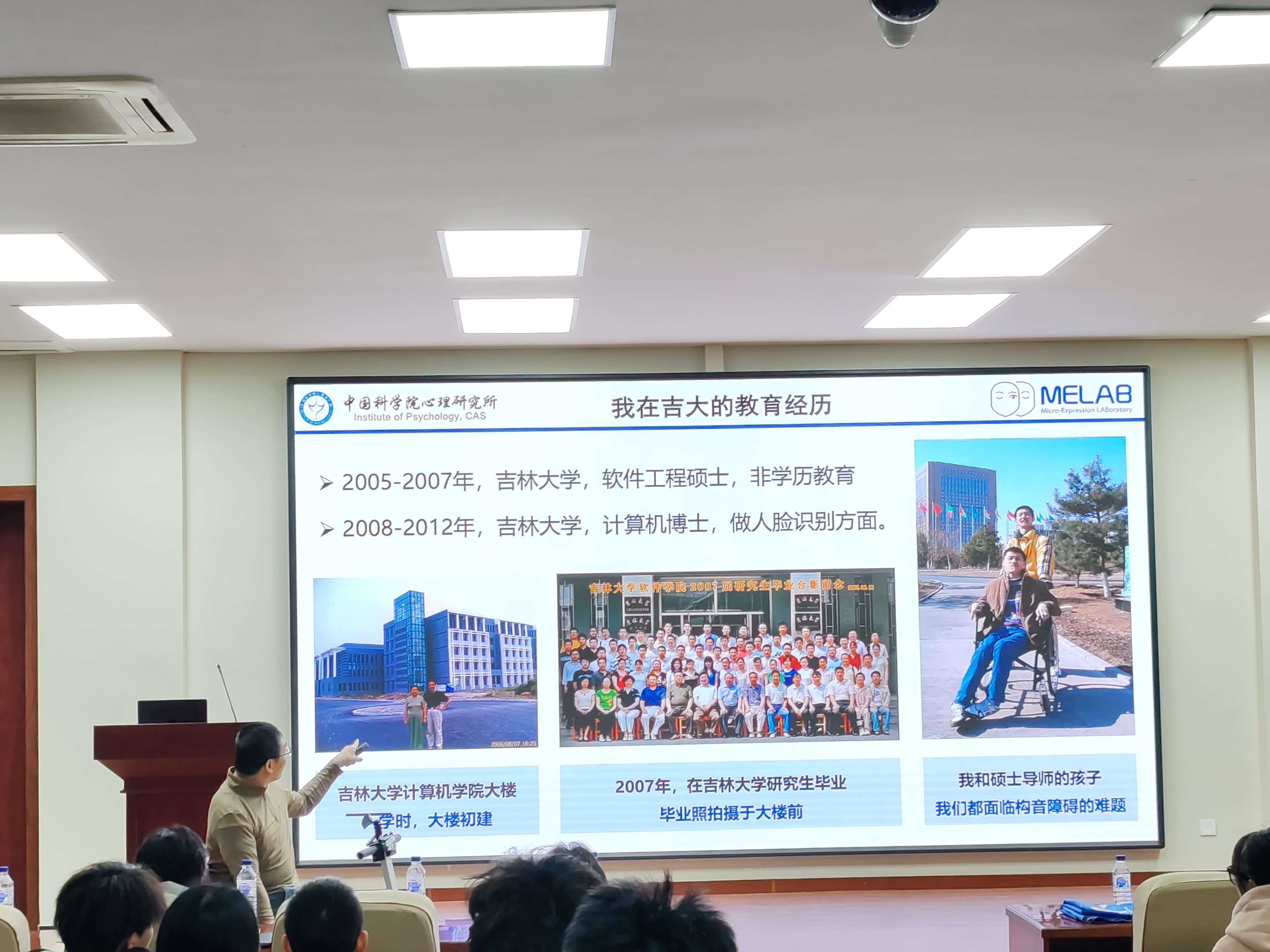 ——I@JLU》为题,分享了自己在母校求学时的成长历程与科研启蒙,并介绍了团队在无障碍智能技术方面的最新探索。王老师用自己的经历诠释了科研之路上的坚持与勇气,他在逆境中不懈求索的精神深深感染了在场师生,赢得热烈掌声。
