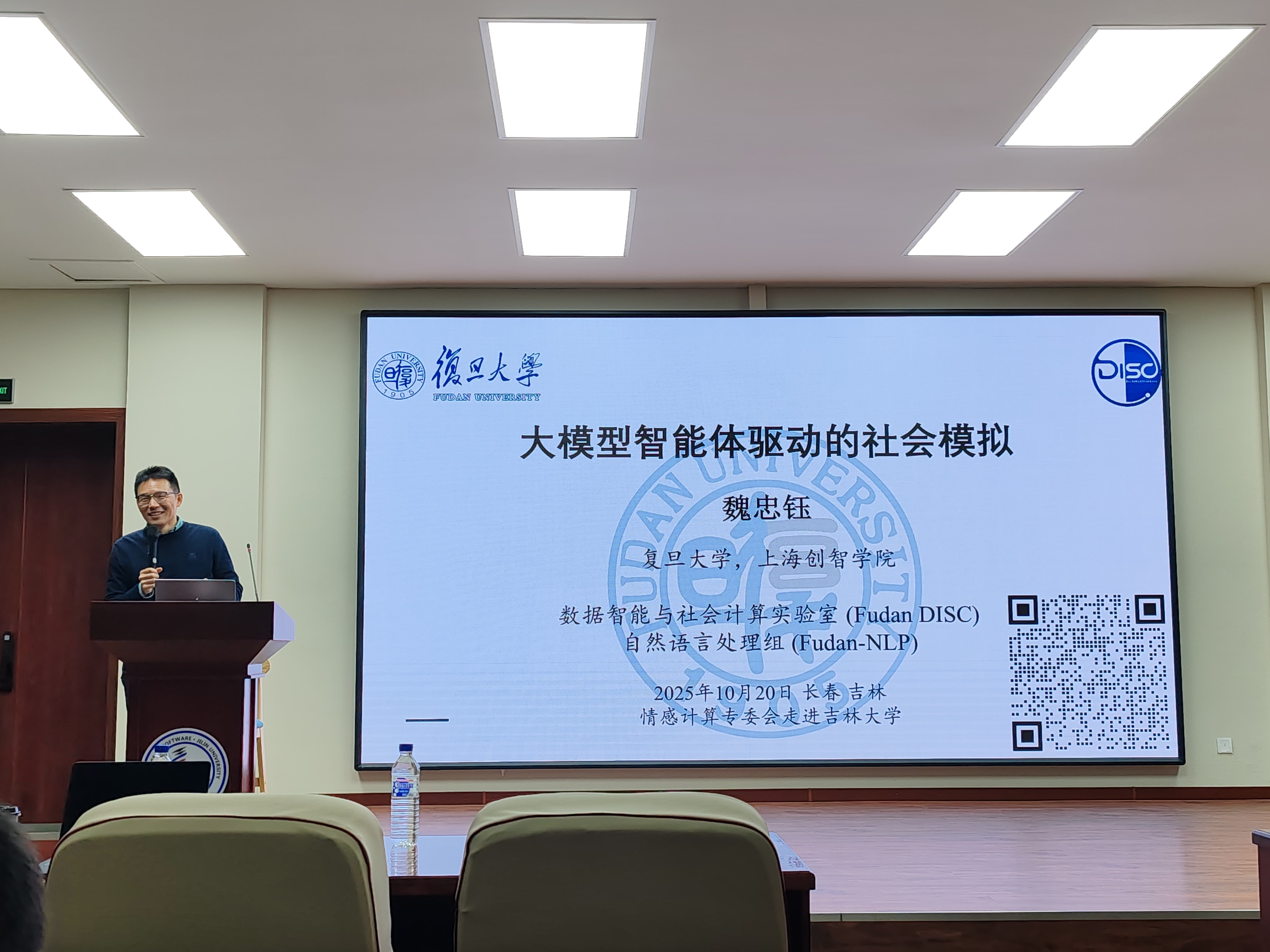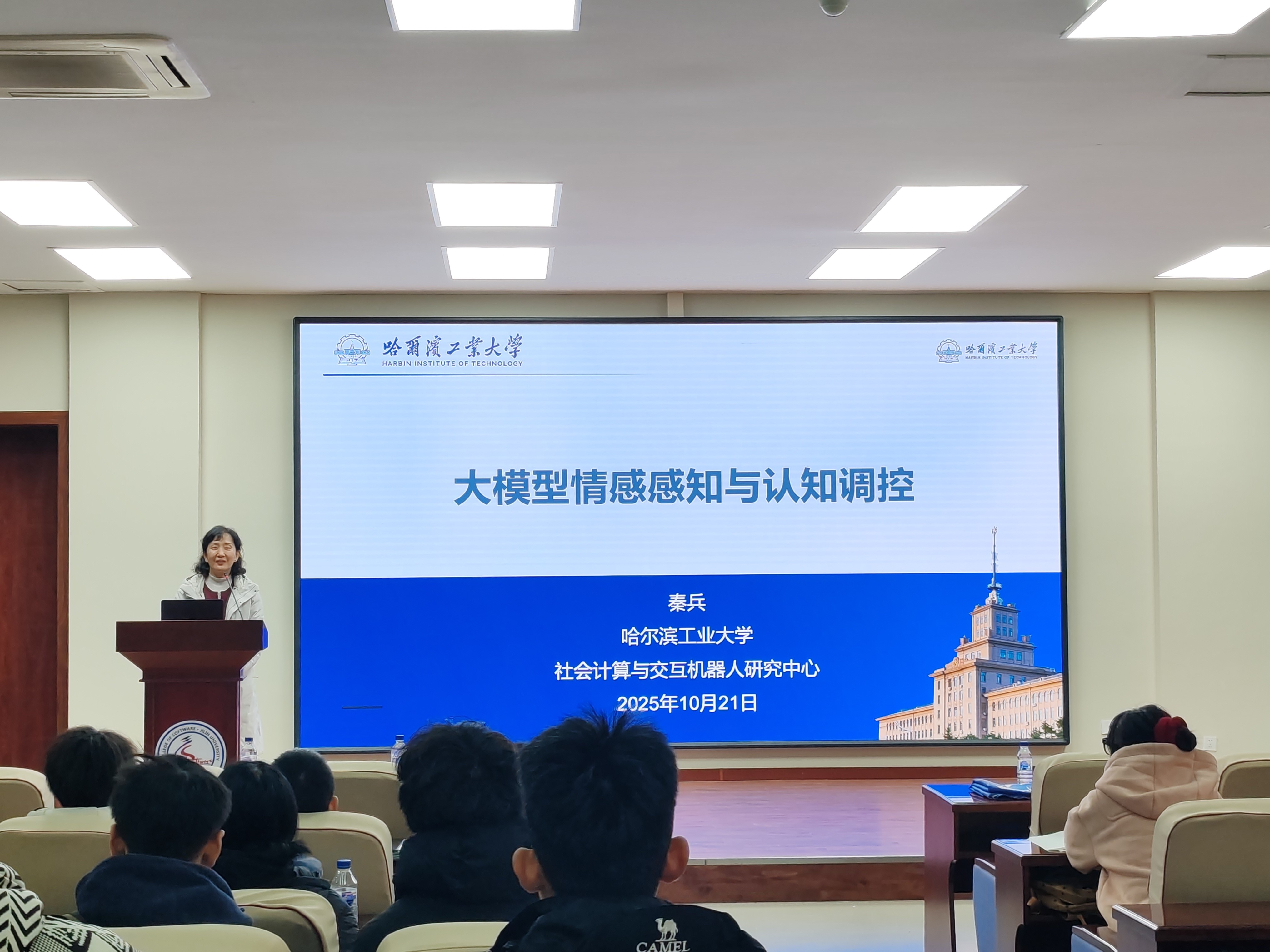紧接着,来自哈尔滨工业大学的秦兵教授以《大模型情感感知与认知调控》为题,深入探讨了如何在大语言模型中融合多模态信息与心理认知调控机制。秦老师指出,未来的大模型不应仅是“工具”,而应成为具备情感智慧与人格特征的“伙伴型系统”。这一构想引发了师生们关于“AI能否真正理解人类情感”的热烈讨论。