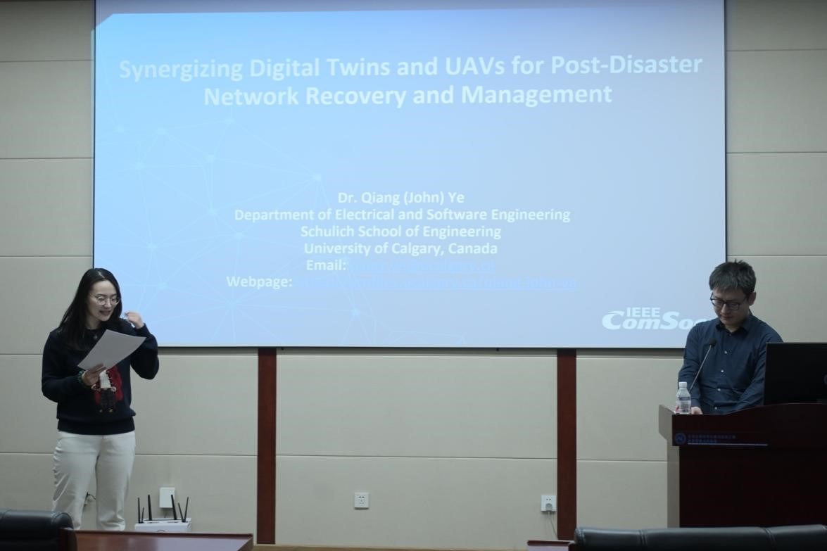 叶博士在报告中首先阐述了灾后通信网络恢复面临的严峻挑战。基于此,他详细介绍了如何利用数字孪生技术构建高保真的灾难环境模型,并提出了一种将数字孪生与无人机(UAVs)深度协同的创新框架。报告中,叶博士展示了该框架如何通过智能算法优化无人机的部署路径与网络覆盖,从而实现高效、动态的灾后网络管理与应急通信恢复。最后,叶博士还对数字孪生在未来弹性网络建设中的应用前景进行了展望。